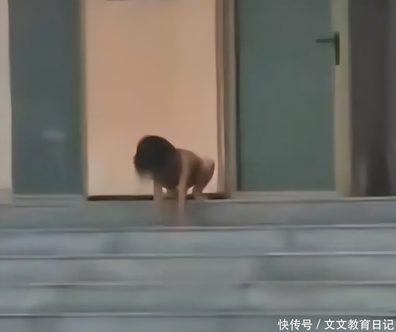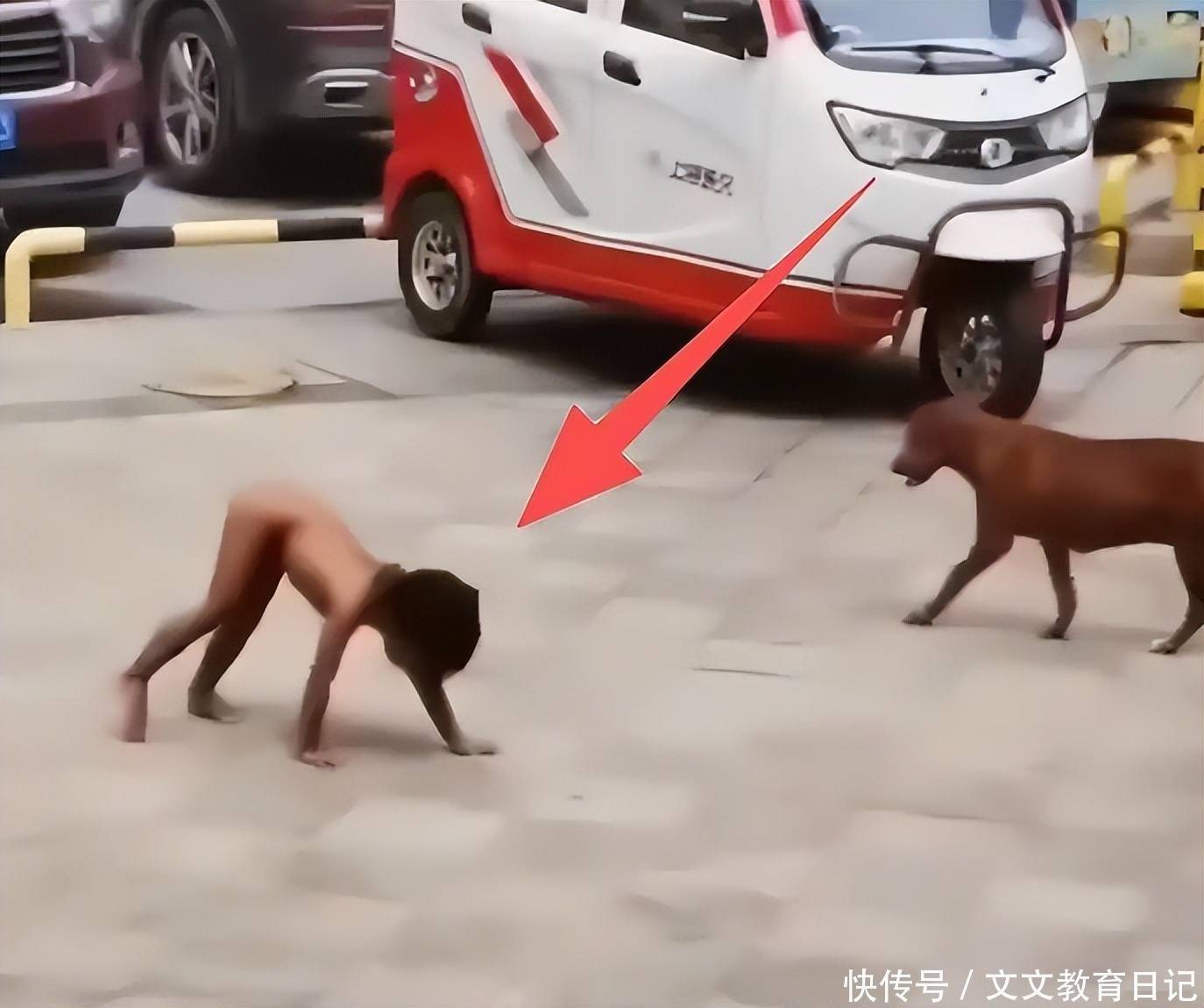 男孩没穿衣服,也没穿鞋子,就手脚并用在地上爬,奔跑的姿势,也是“四肢着地”,看起来娴熟的让人心疼。